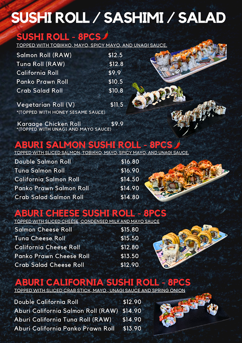 2 Entrees + 2 Mains + 1 Sushi Roll/Dessert + 2 Drinks