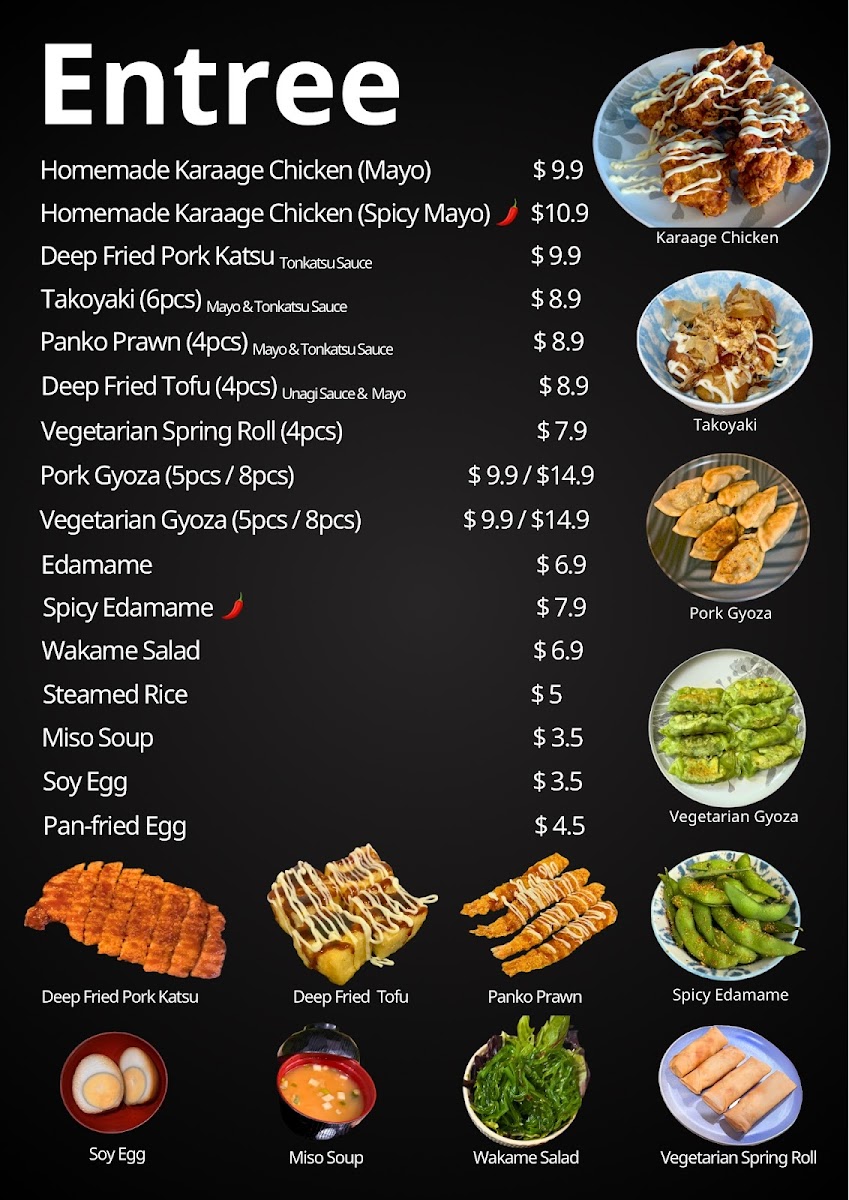Deep fried tofu (4pcs) on thick udon noodles with rich Japanese curry suace, edamame, red pickle & spring onion.*Curry sauce on side